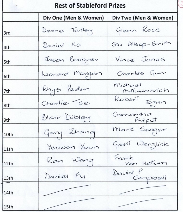 Thank you to all players for sticking it out through some hot, demanding conditions, and well done to every prize winner across the weekend.